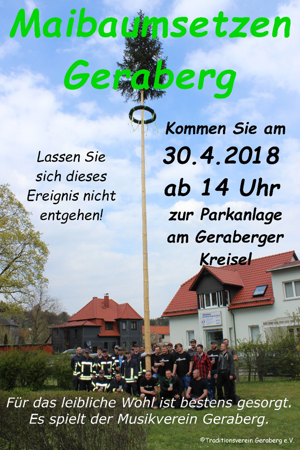 01. 05. 2018 Vor einer begeisterten Zuschauerkulisse erfolgte gestern durch den Traditionsverein, unterstützt von Helfern und abgesichert durch die örtliche Feuerwehr, das traditionelle Maibaumsetzen. [Mehr . . . ] [Video . . . ] |